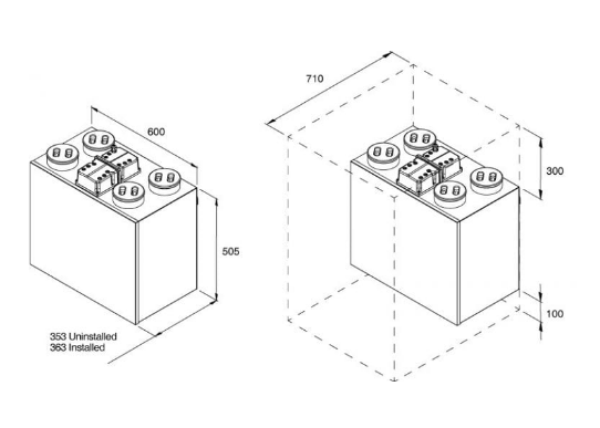The Titon HRV1.6 Q+ Eco HMB is a compact high efficiency MVHR System suitable for medium sized homes. Including intelligent Summer Bypass & humidity controls and SUMMERboost® facility. Intelligent frost protection, stepped reduction of supply air rates prevents HRV unit from freezing. Fully adjustable boost overrun timer 0-60 minutes; can be used with non-latching (momentary) switches to prevent unit from being accidentally left in boost mode.
