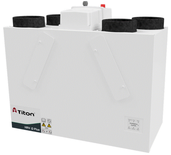 The Titon HRV4 Q+ Eco HMB with auralite indictor - Left or right-hand is a high efficiency MVHR System suitable for medium sized homes. Includes fully adjustable boost overrun timer 0-60 minutes; use with non-latching (momentary) switches to prevent unit from being accidentally left in boost mode. Intelligent frost protection and Summer Bypass & humidity controls.